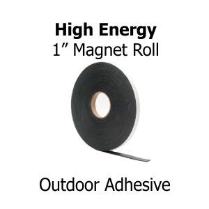 The High Energy stripping has an outdoor adhesive so they can be used outdoors or indoors. We have these powerful magnetic strips available in a .5" wide x 100' and a 1" wide x 100' long strips.